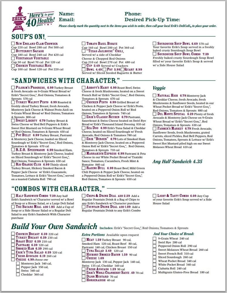 Erik's DeliCafé Roseville Menu (Update 2025)